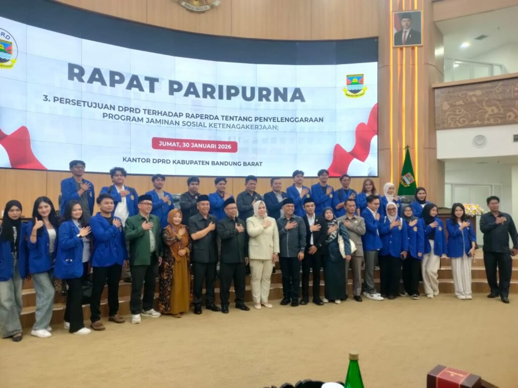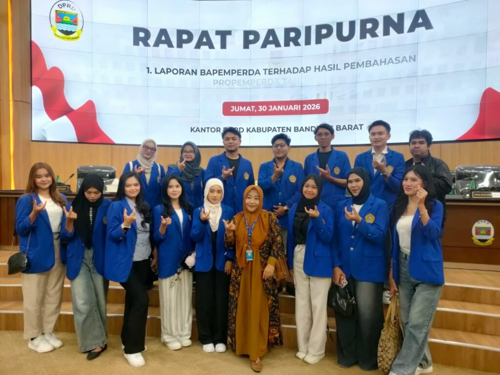 Ngamprah, Kabupaten Bandung Barat, Jawa Barat, 30 Januari 2026. Kunjungan kelembagaan mahasiswa Ilmu Pemerintahan Fakultas Ilmu Sosial dan Ilmu Politik (FISIP) Universitas Komputer Indonesia (Unikom) ke DPRD Kabupaten Bandung Barat menjadi bagian penting dari pelaksanaan Sidang Paripurna DPRD yang membahas dan menyetujui Rancangan Peraturan Daerah (Raperda) tentang Penyelenggaraan Program Jaminan Sosial Ketenagakerjaan. Kunjungan tersebut dipimpin oleh akademisi FISIP Unikom, Dr. Tatik Rohmawati, sebagai bagian dari pembelajaran langsung proses legislasi dan pengambilan kebijakan publik di tingkat daerah.