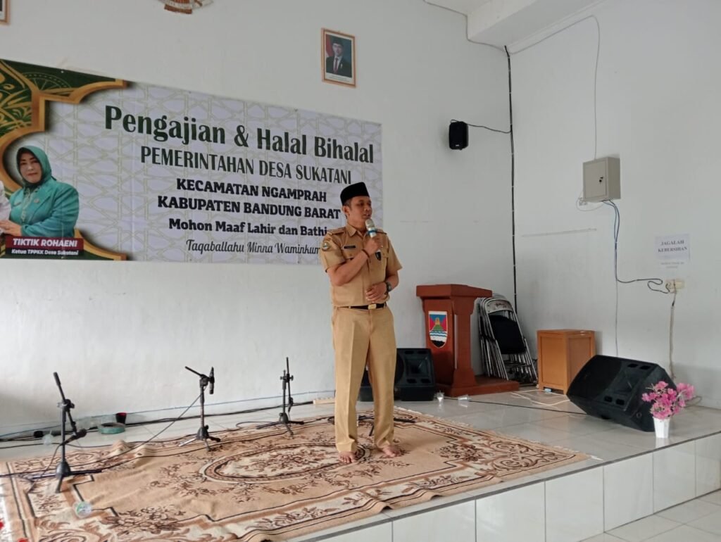 Jurnalis9.com. Sukatani, Ngamprah. 30 Maret 2026. Semangat kebersamaan dan evaluasi diri menjadi warna utama dalam kegiatan pengajian serta halalbihalal yang digelar Pemerintah Desa Sukatani, Kecamatan Ngamprah, Kabupaten Bandung Barat, Senin (30/3/2026). Momentum ini tidak hanya menjadi ajang silaturahmi keagamaan, tetapi juga ruang terbuka bagi aparatur desa untuk menyampaikan permohonan maaf serta komitmen perbaikan layanan publik.
